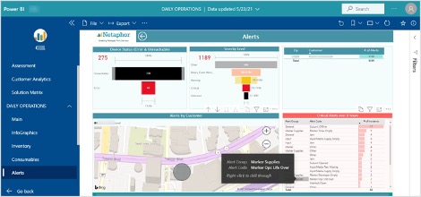 Puede profundizar a una ubicación especifica del cliente basado en el tipo de alerta. Por ejemplo, profundizar para tener mayor detalle sobre las alertas de los consumibles.